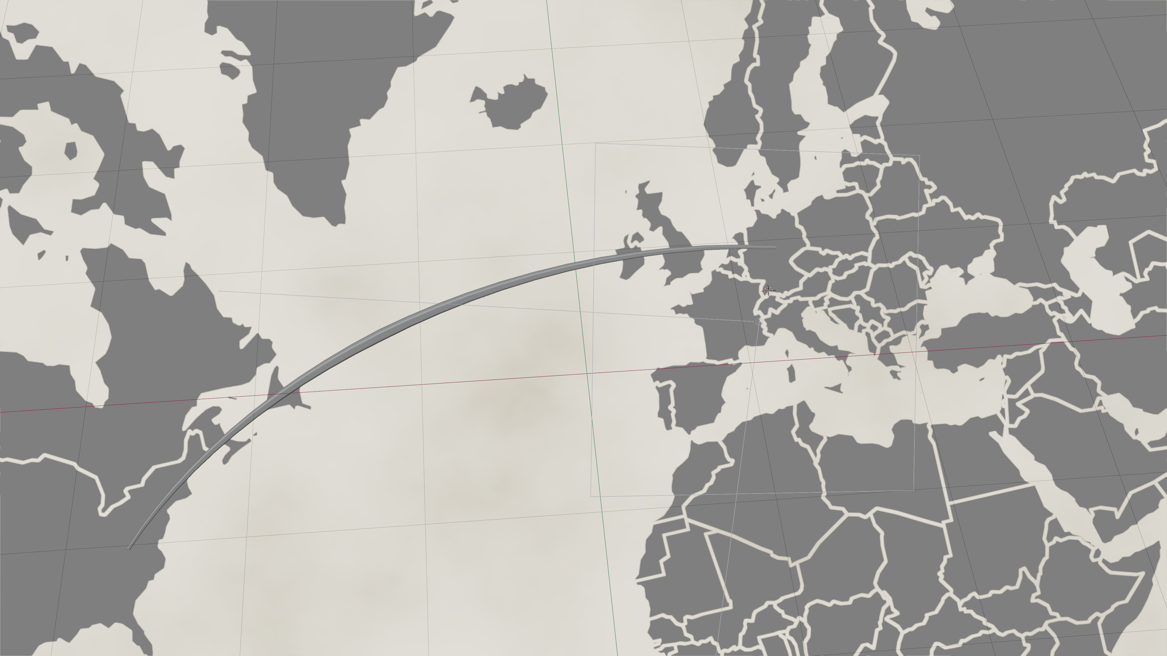 The opening shot is a simple red arc over a map, reminiscent of an Indiana Jones travel sequence.